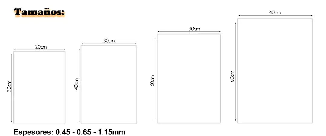 | Espesor | 0.45mm / 0.65mm / 1.15mm |